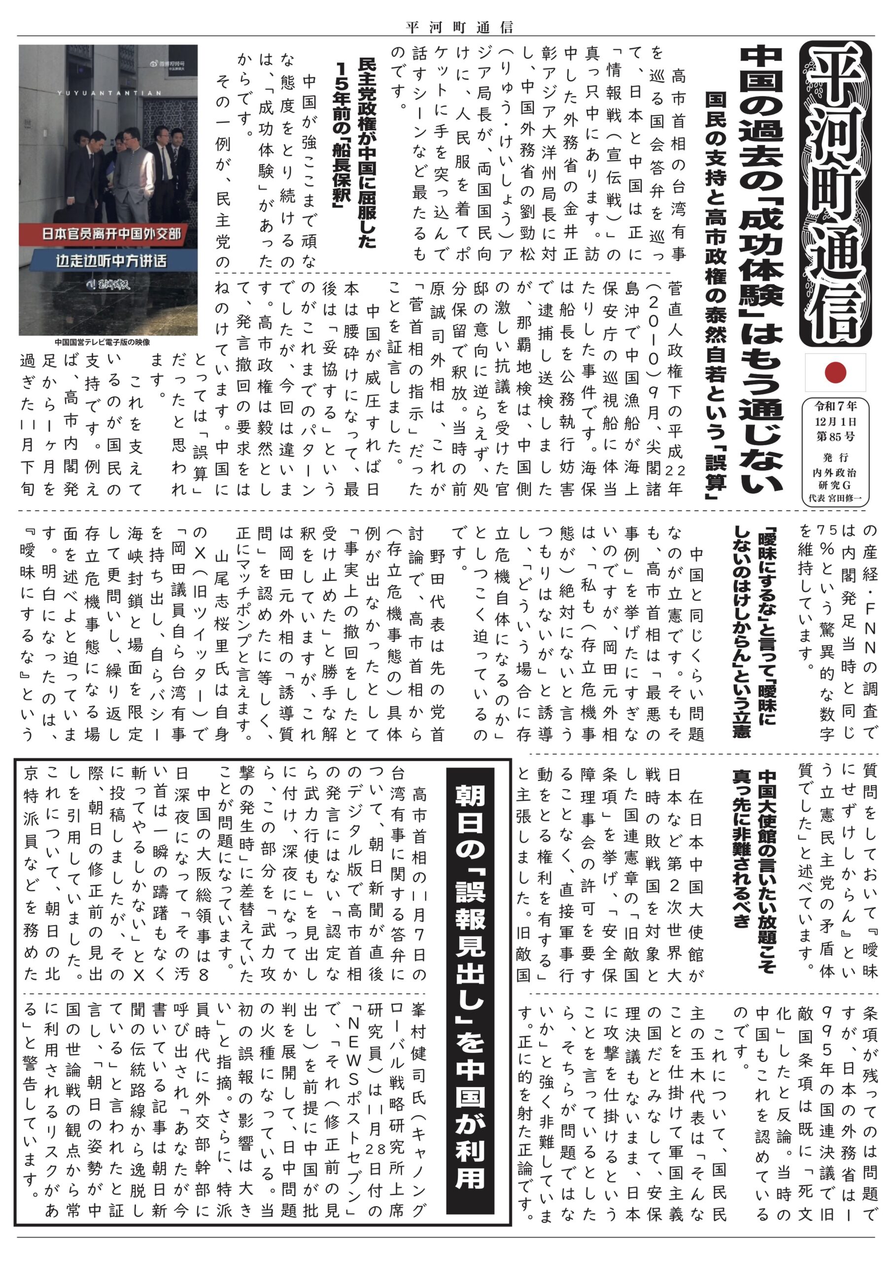 平河町通信 第10号 ー 守勢から転じ「国家意思」を示せ